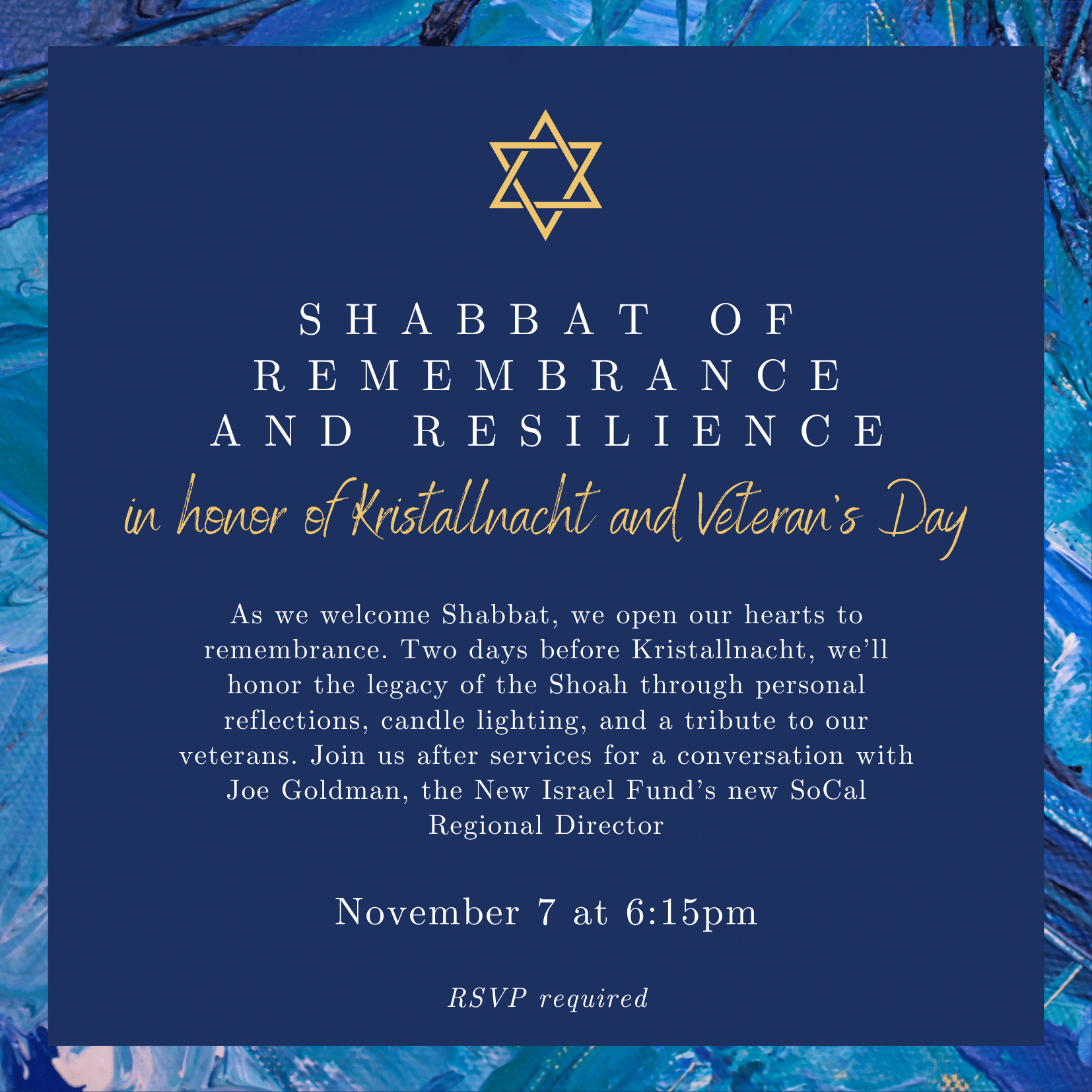 Shabbat of Remembrance and Resilience in honor of Kristallnacht and Veteran’s Day
