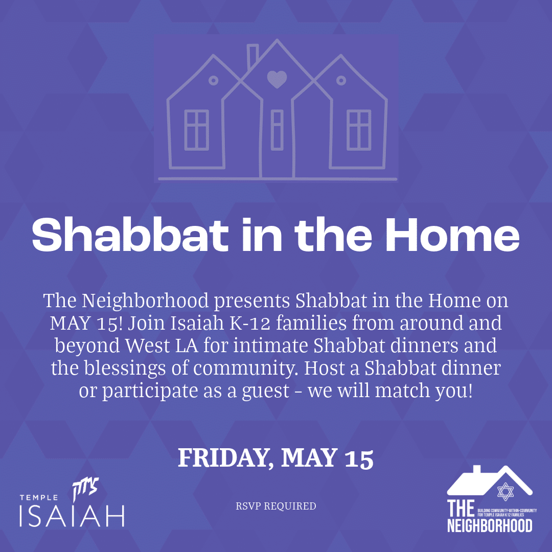 The Neighborhood presents Shabbat in the Home on MAY 15! Join Isaiah K-12 families from around and beyond West LA for…