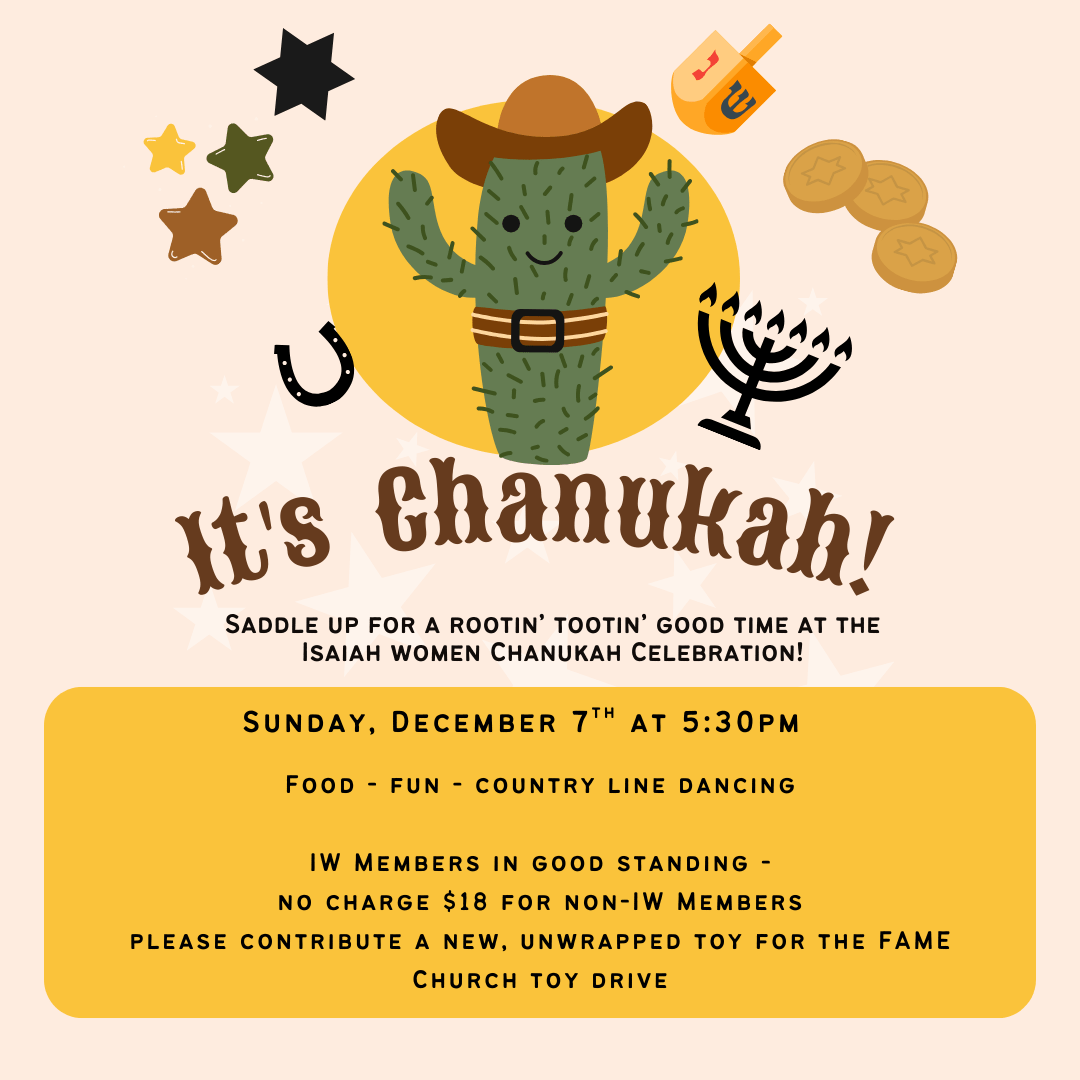 Social HallJoin us as Rabbi Zoe and Cantor Schloss kick off the Festival of Lights with food, fun, and country line…