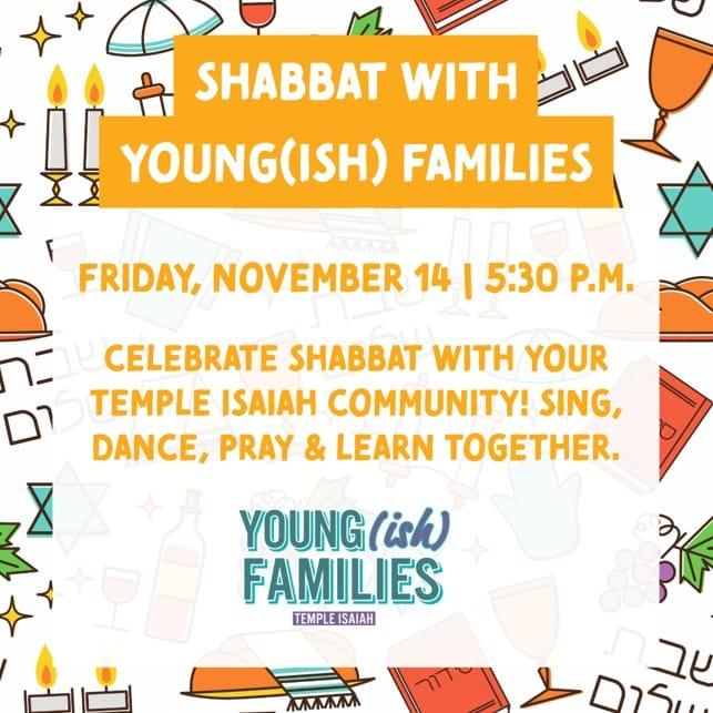 Sanctuary and social hallJoin us for Young(ish) Families Shabbat as we gather with family, friends, and community at Temple Isaiah. You'll enjoy singing,…