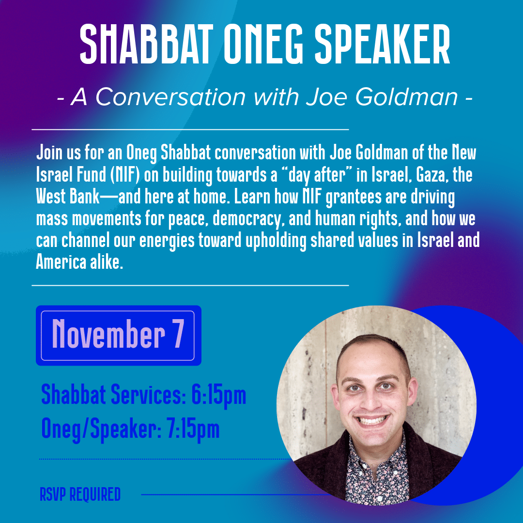 Social HallAfter Shabbat services we welcome NIF’s new SoCal regional director Joe Goldman for an Oneg Shabbat conversation about the ways…